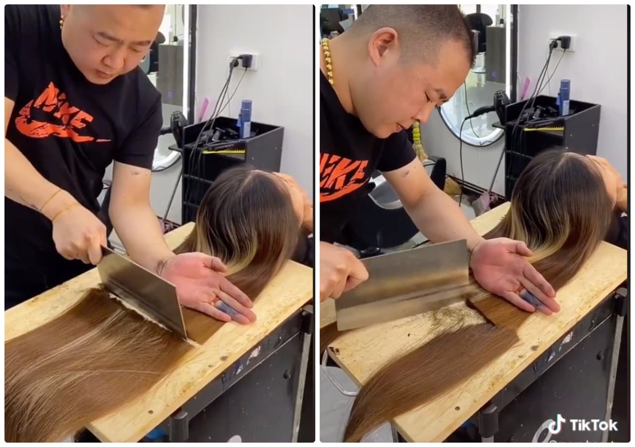 Aunque esto puede sonar disparatado, hay un peluquero que recientemente enloqueció a los usuarios de TikTok al demostrar que detrás de un buen corte de cabello también haber gran cuchillo, algo de fuerza y mucha, mucha precisión.