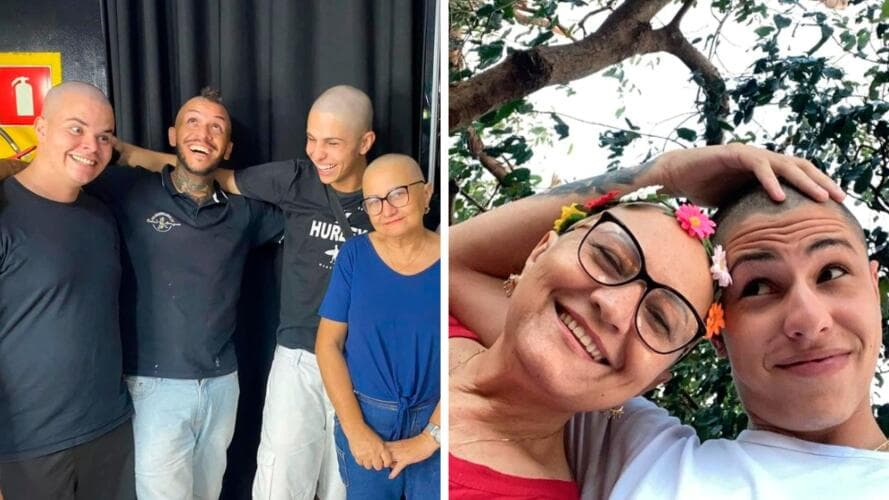 Para esto le pidió ayuda a su hijo Guilherme, quien accedió con gusto y la llevó a la barbería donde trabaja con un par de amigos. Al inicio, comenzó a afeitar a su mamá quien mantenía una mirada de tristeza al ver cómo caía su cabellera al suelo.