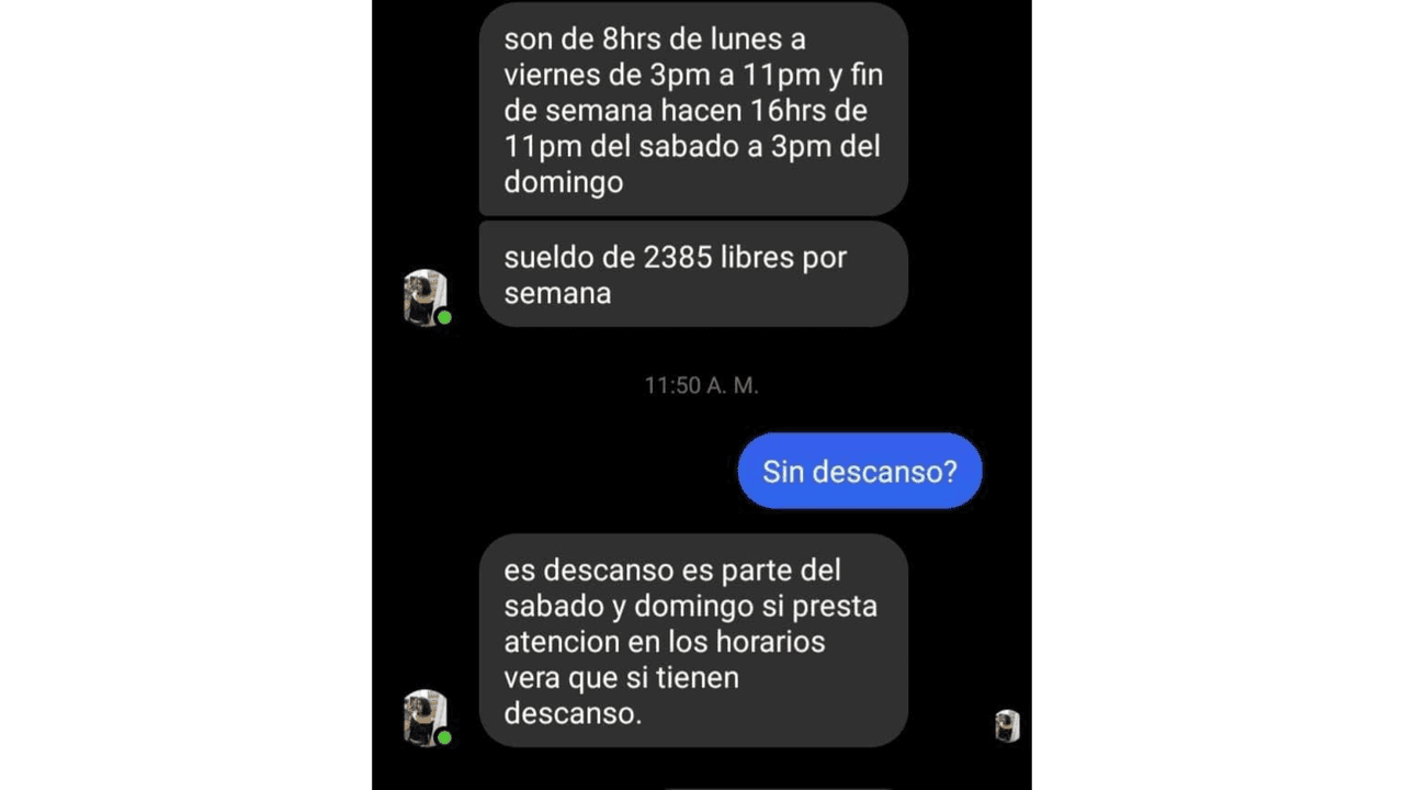 “Trabajaba en un local de ropa de 9 a 19 (horas) y solo podía ir al baño 2 veces al día. Y comer en 10 minutos”, relató una internauta identificada como Luciana. Eso, más bien parece explotación moderna.