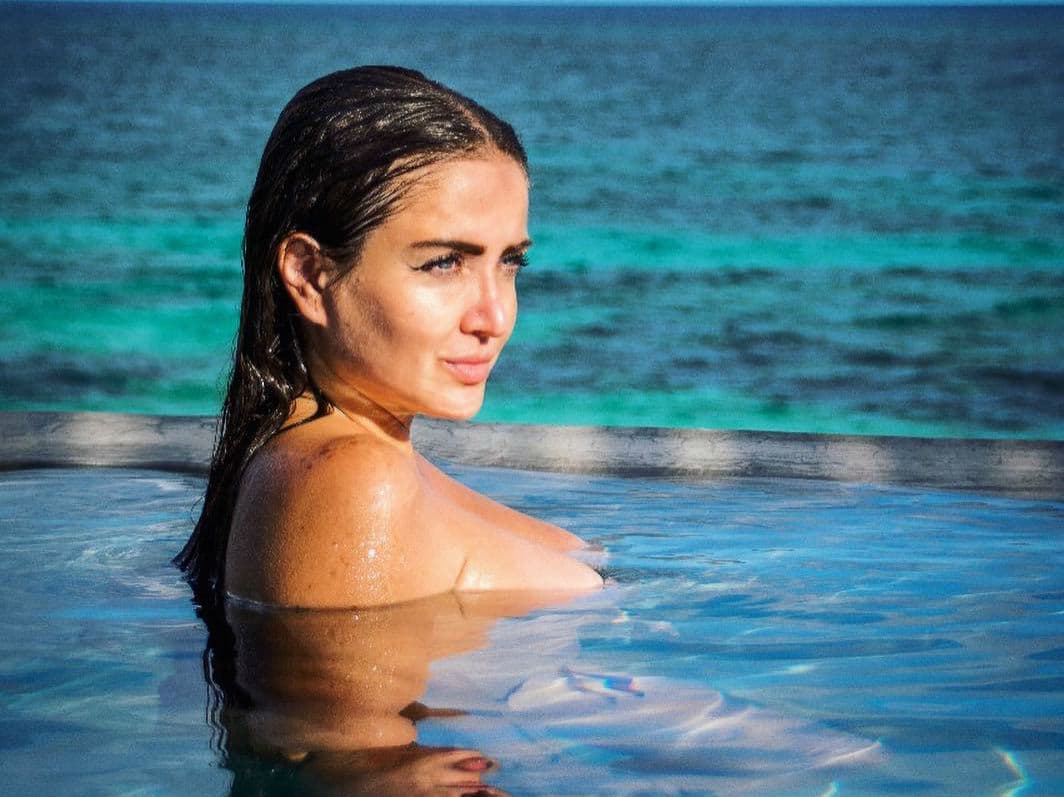 Celia Lora atrajo miles de miradas con una serie de fotografías en las que mostró sus encantos delanteros y por poco deja al descubierto sus partes íntimas.
