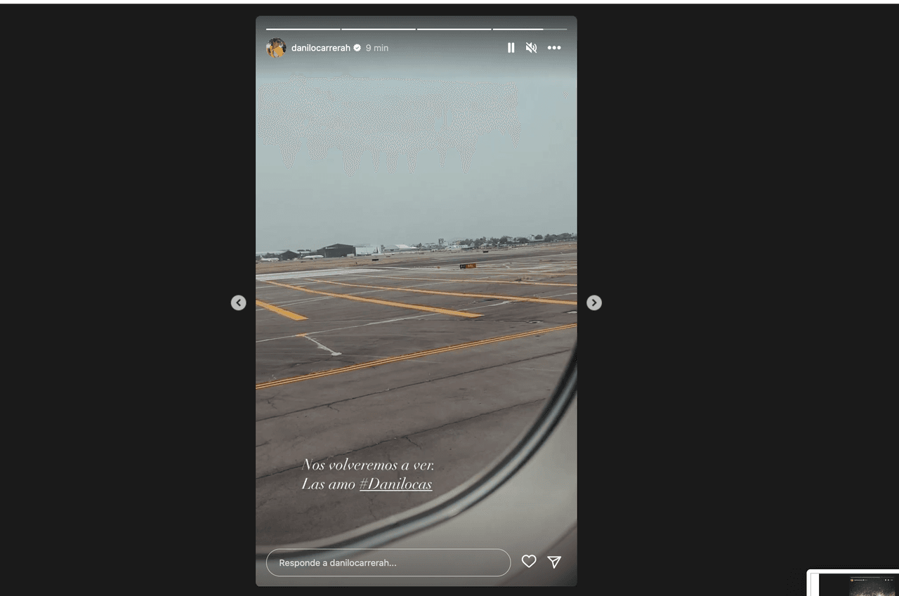 Ese mismo día por la mañana, Danilo publicó otra foto que llenó los ojos de sus seguidores de lágrimas, pues en ésta se percibe al actor dentro de un avión, rumbo a su nueva vida. "Nos volveremos a ver, las amo #danilocas", escribió el actor refiriéndose a sus fans mexicanas, quienes lo han apoyado desde su primera aparición en alguna producción de esta televisora, la cual se dio en la telenovela 'Sin rastro de ti'.