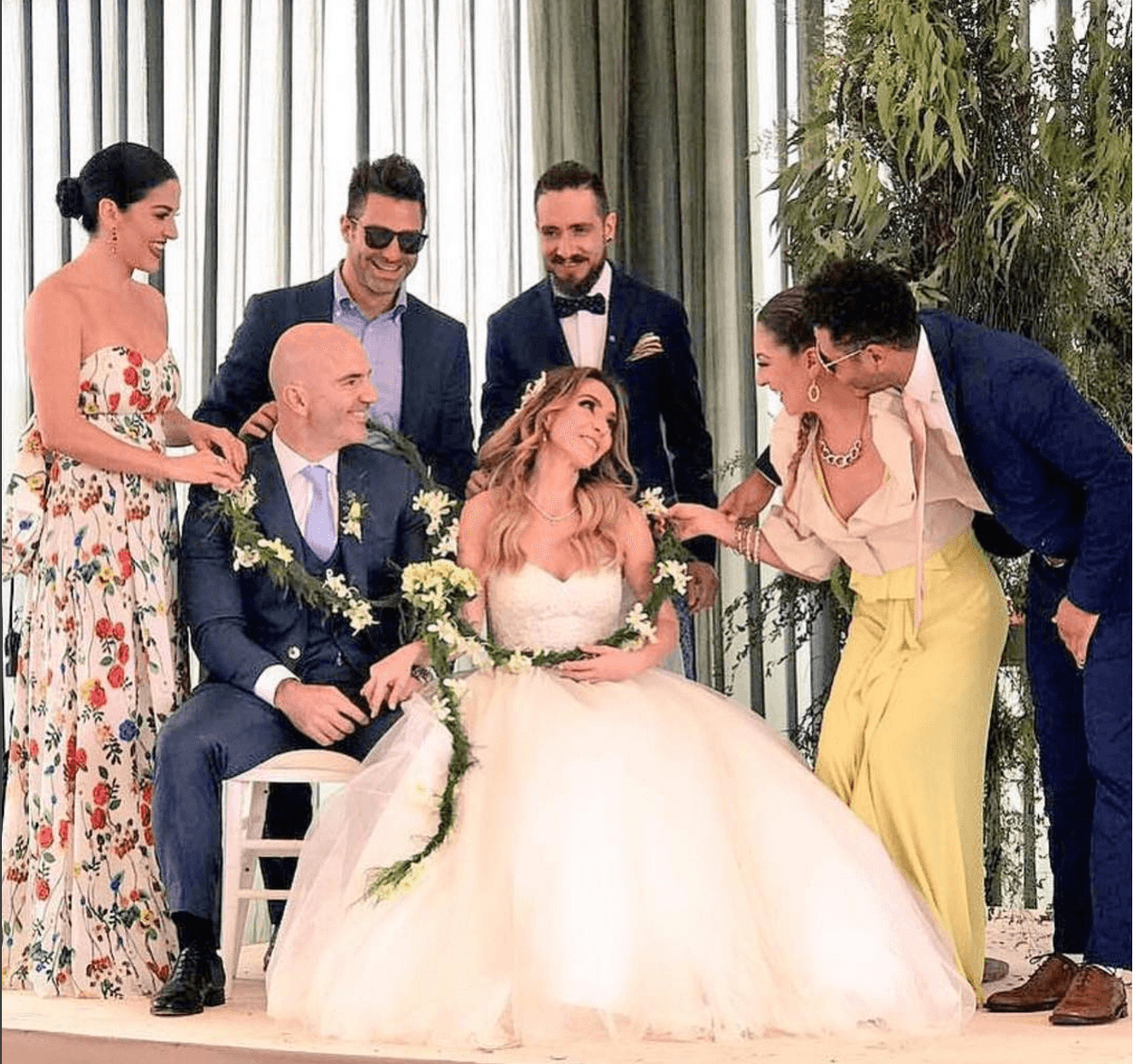 Erika Zaba y Francisco Oliveros se casaron el 1 de julio de 2017 luego de dos años de relación. La boda, que tuvo como concepto un bosque encantado, ocurrió en la Hacienda Los Picachos en San Miguel de Allende, Guanajuato.