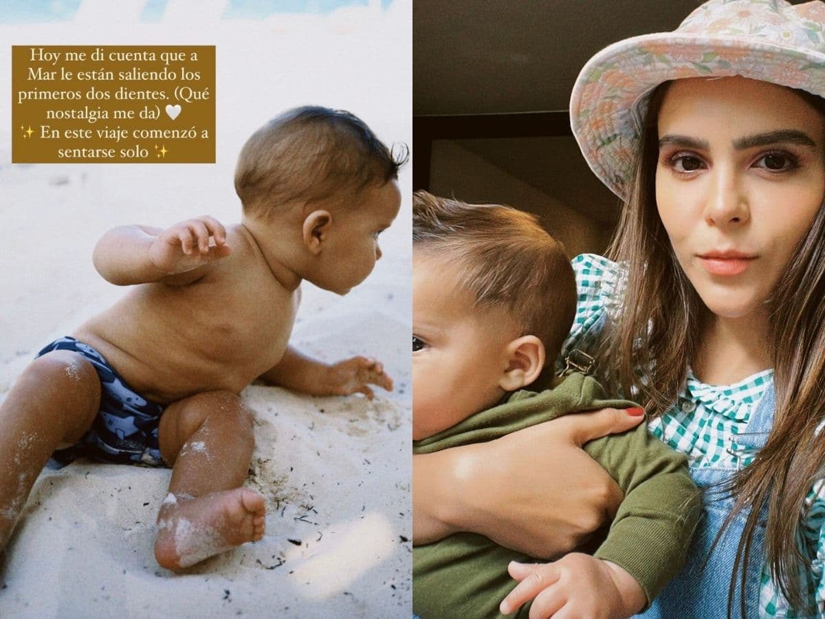 Fue a través de sus historias de Instagram que la influencer compartió con sus millones de seguidores una serie de fotografías de sus más recientes vacaciones en la playa, donde, dijo, no solo descubrió que ya le están saliendo sus primeros dientes a Mar sino que también estaba aprendiendo a sentarse.