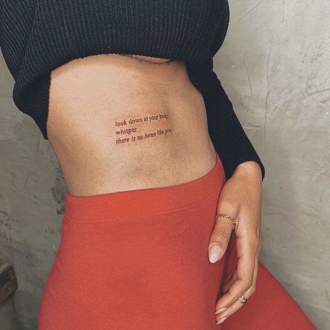 La actriz de 24 años conmemoró la transformación en su cuerpo con un nuevo tatuaje: “mira abajo a tu cuerpo, susurra, no hay hogar como tú”