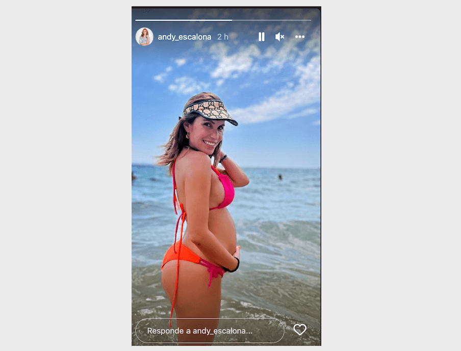 Andy Escalona presume pancita de embarazo en trajes de baño fosfo