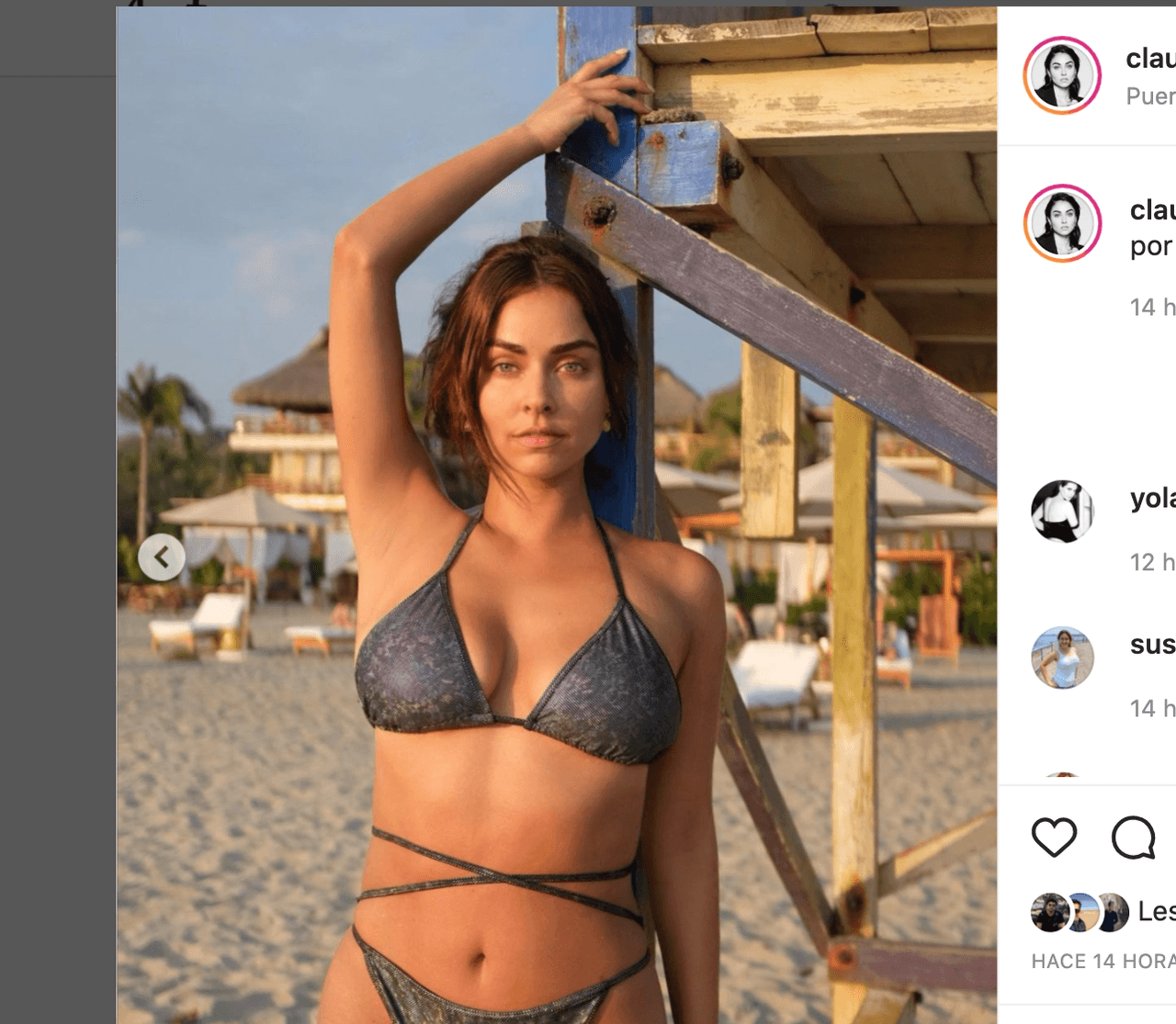 Sin embargo, recientemente publicó un par de imágenes en la playa de Puerto Escondido, Oaxaca, que volvió locos a sus fans. En éstas, se puede ver a Claudia posando con un traje de baño oscuro con textura, leves marcas de otros colores, y un cordón que cruza por su abdomen y que hace que dicho bikini, sea uno de los más originales que la artista haya compartido.