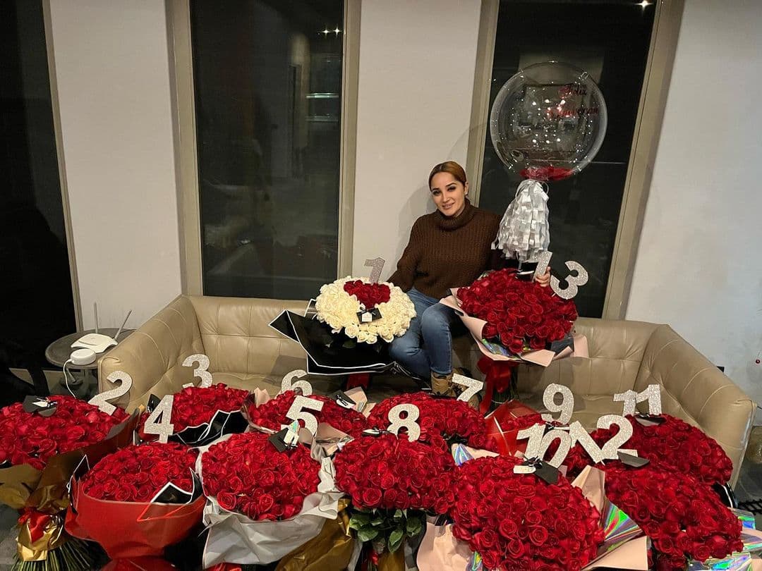 Apelando a su lado más romántico, el cantante regaló a su esposa nada más y nada menos que 13 arreglos de rosas rojas -excepto uno que fue de rosas blancas con un corazón de rojas en medio- uno por cada año de relación.