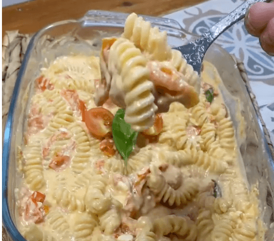 Necesitas: Jitomate cherry, aceite de oliva, ajo, queso feta, sal, pimienta, albahaca, la pasta de tu elección (la mayoría lo hace con fusilli).