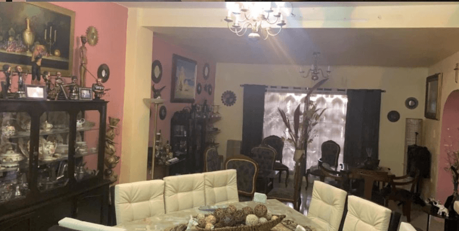 Posteriormente, desde aquí se aprecia de mejor manera la zona del comedor, con su vitrina para guardar vajilla, así como otro espacio que antes no se observaba en el que hay algunas sillas antiguas acomodadas en círculo.
