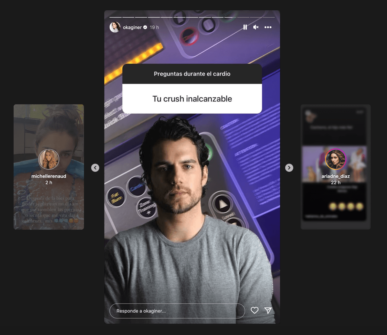 Ya se ha vuelto costumbre que Oka Giner 'charle' con sus seguidores de Instagram durante su sesión de cardio, en la caminadora. Y es que últimamente la protagonista de 'Perdona nuestros pecados' ha encontrado entretenido abrir una caja de preguntas que ella va respondiendo en sus historias, mientras se ejercita.