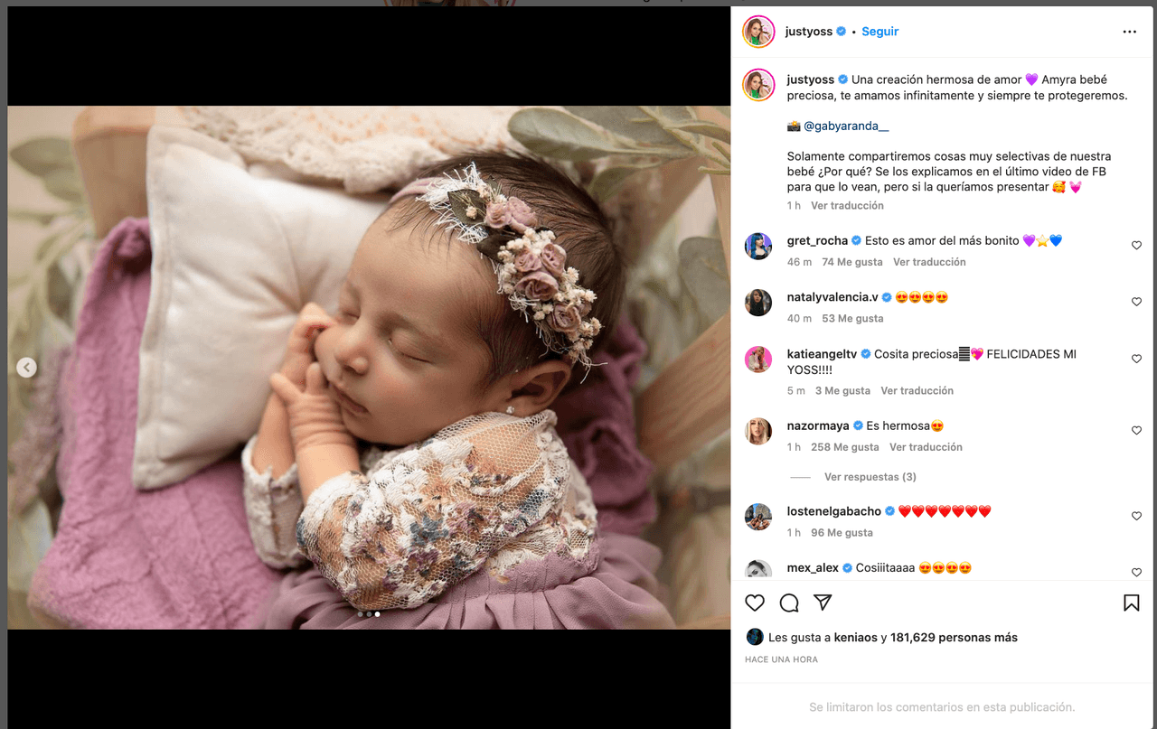 Desde ese momento y hasta ahora, Yoss no ha reparado en compartir con sus fans su experiencia tant en el parto como en sus primeras semanas siendo madre. Sin embargo, hasta el momento la mexicana y su pareja habían decidido no enseñar el rostro de su bebé.