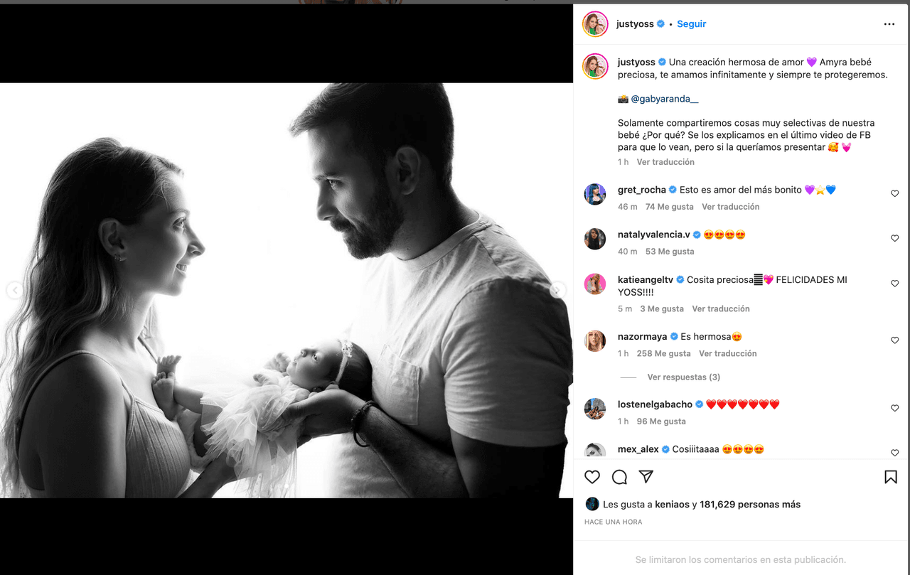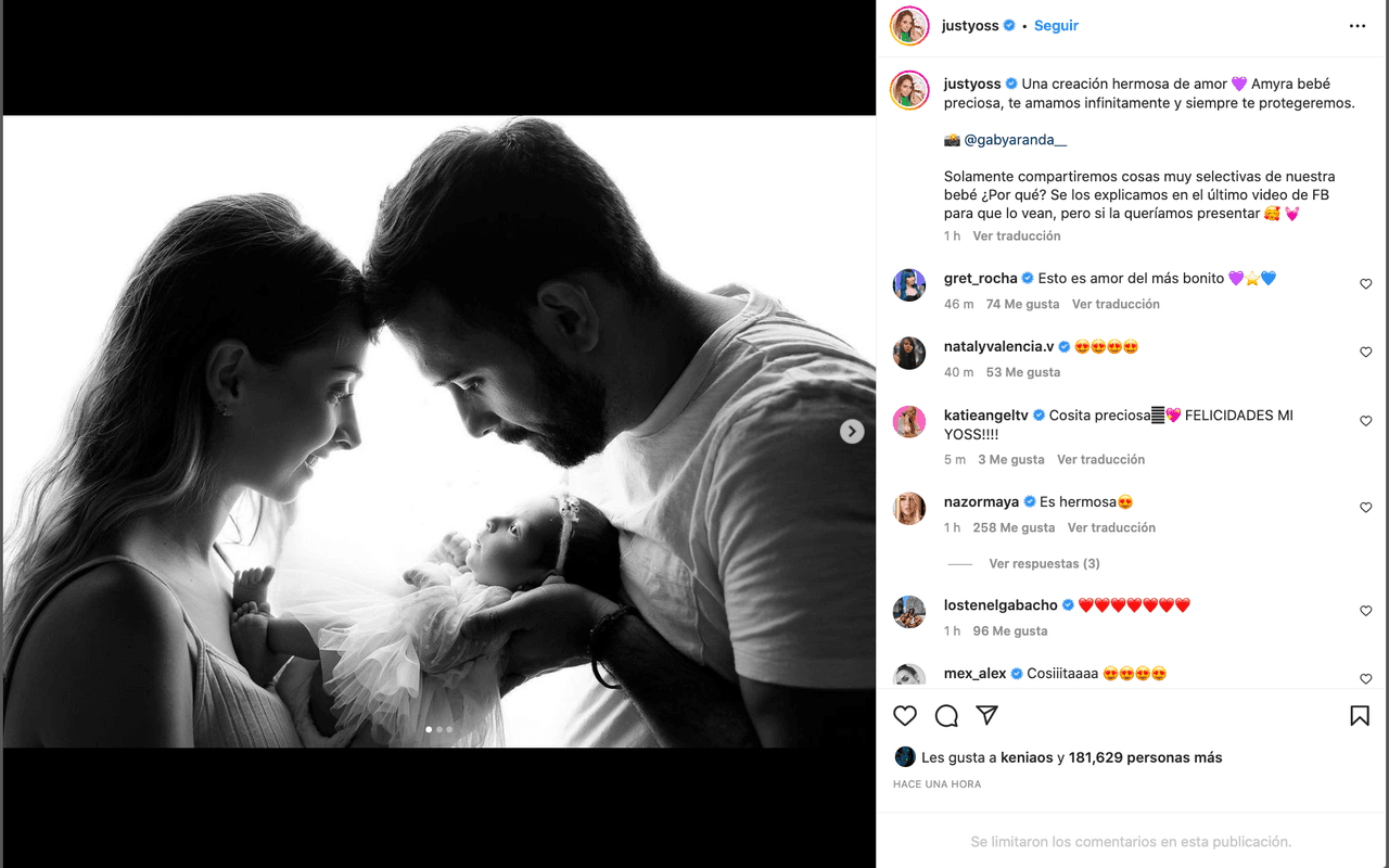 Yoss compartió tres fotos en las que aparece junto a Gerardo y a su tierna hija, en las que quedó al descubierto la carita de la pequeña. Aunque en YouTube ya la había mostrado, la influencer no la había subido a Instagram, su red social con la comunidad más grande.