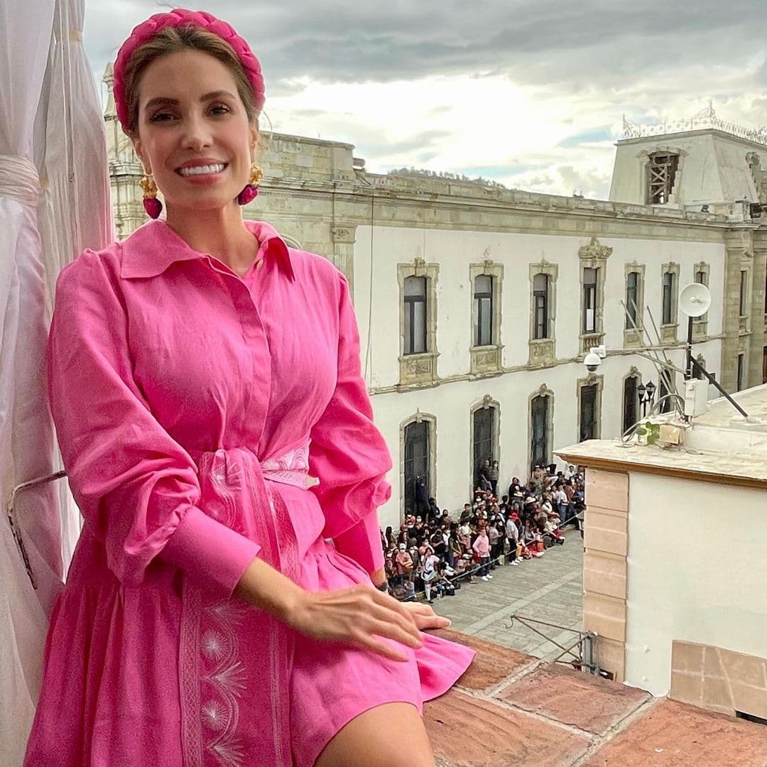 La futura mamá de 'Churrite' apantalló a sus más de 2 millones de seguidores con u n look de minivestido rosa, de tela ligera, adornado con un elegante y folclórico cinturón y una diadema trenzada, tradicional de Oaxaca.