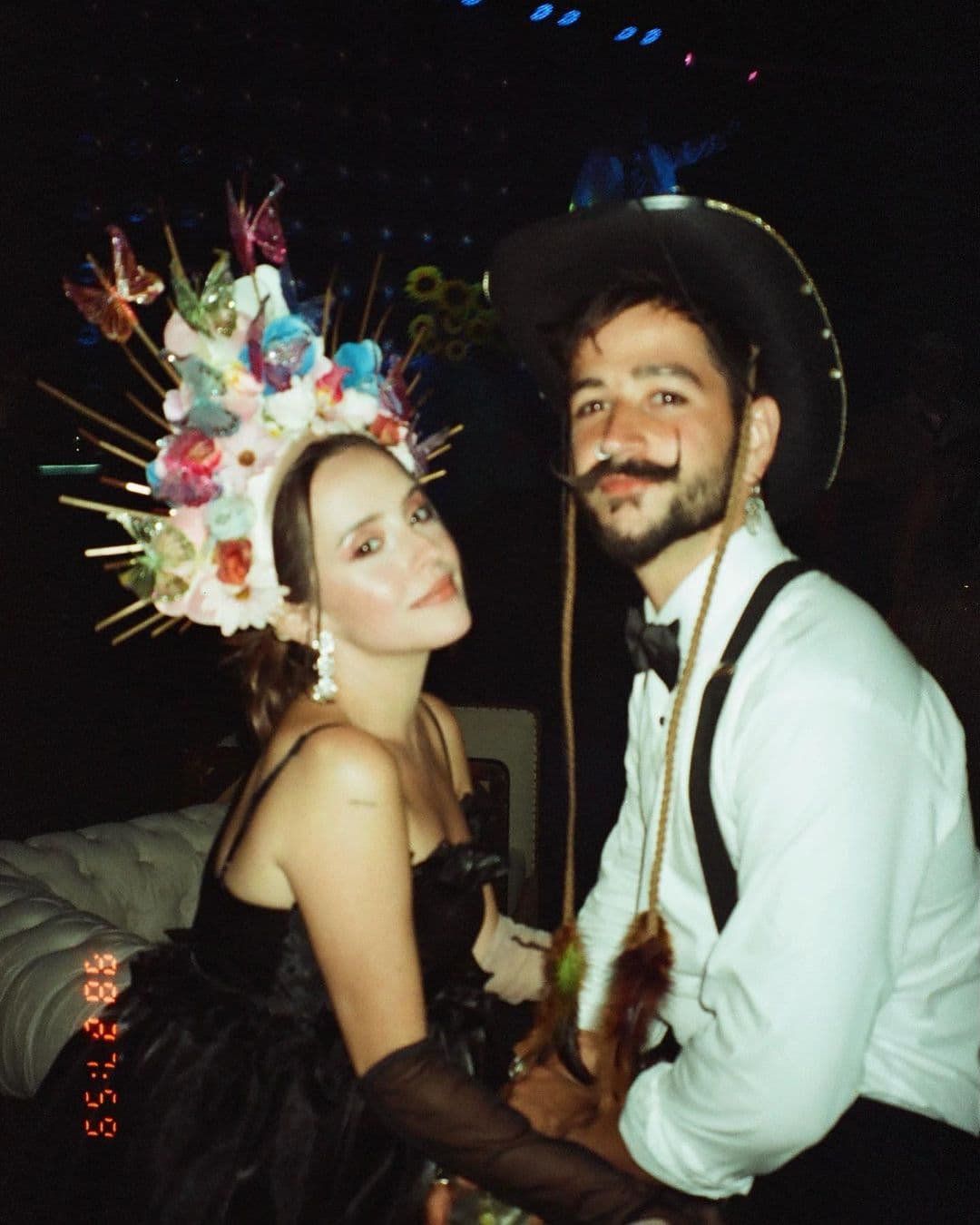¿Qué trae puesto Camilo? El colombiano se fue por un traje estilo boho en el que coordinó la textura de su saco con el vestido de Evaluna. Algo que por supuesto no pudo faltar, fueron sus característicos accesorios como los anillos, aretes y un collar con una fotografía.