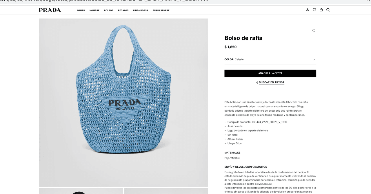 En la tienda oficial de la marca en España, dicho bolso -hecho con rafia- cuesta 1 mil 850 euros, el equivalente a 37 mil 454 pesos mexicanos. Sin embargo, en una reconocida tienda que distribuye marcas de lujo, éste se encuentra ¡en 42 mil 900 pesos!