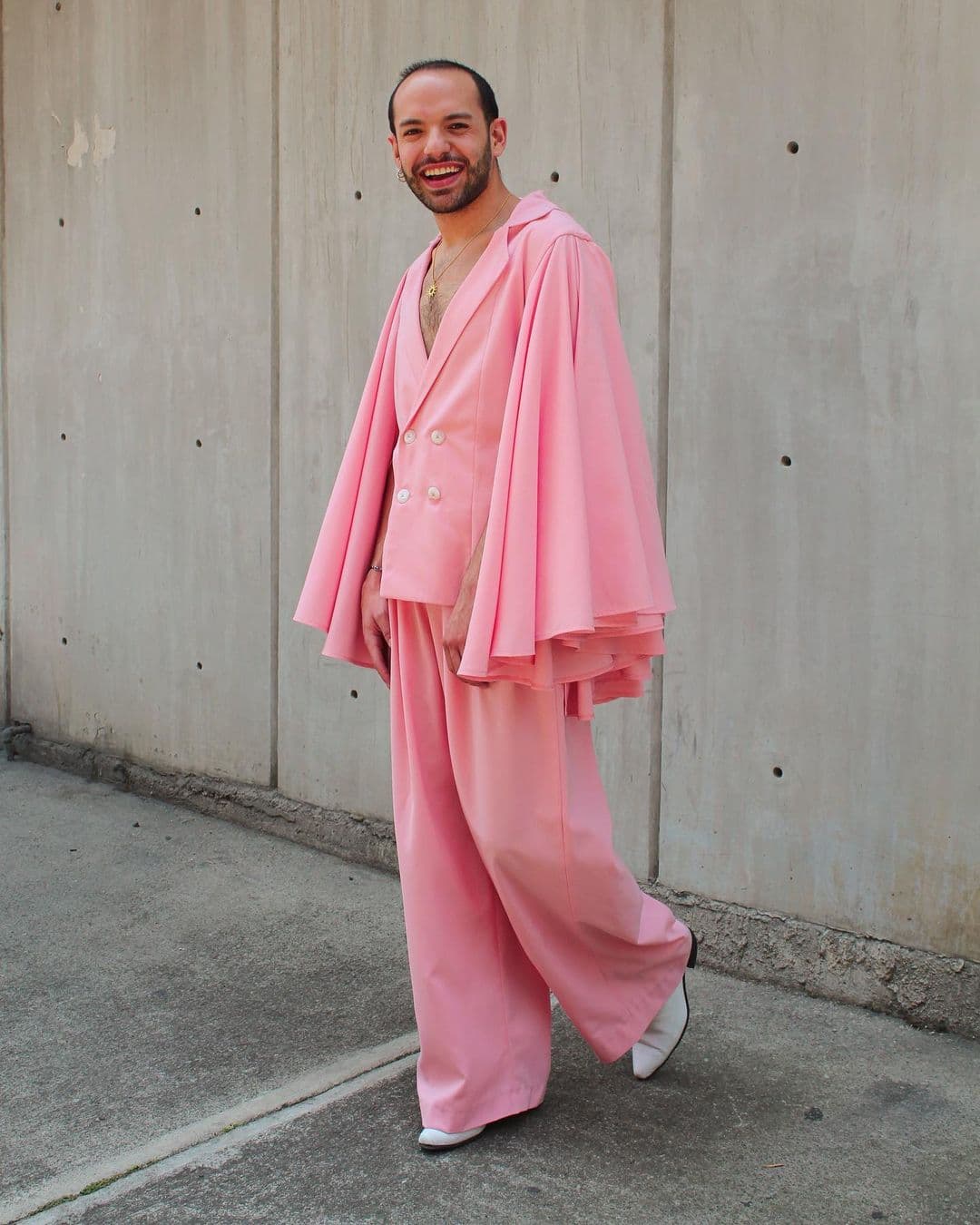 El vanguardista look compuesto por un set de dos piezas en color rosa, transformó el traje como lo conocemos y trajo una propuesta mucho más chic e innovadora para un evento formal de día, como lo fue la boda de su prima y amigo.