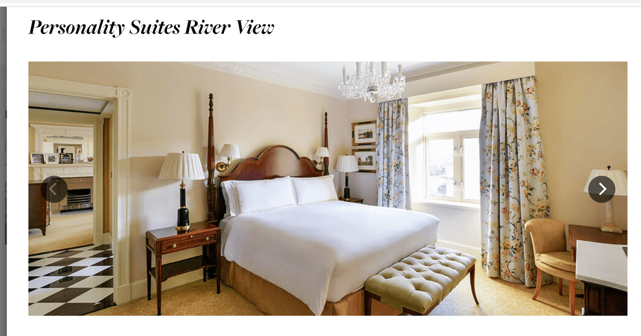 La habitación más cara, no obstante, es la llamada 'Personality Suite River View', que refiere a una habitación con estilo 'Art Deco' y cuya decoración está inspirada en importantes personalidades. Si quieres pasar una noche en ésta, su precio es de 125 mil 392 pesos (esperamos que con desayuno incluido).