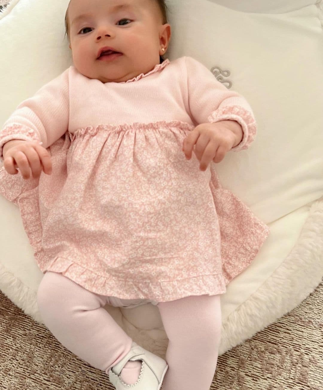 También, la bebé ha destacado por sus looks de vestidos floreados con manga larga, en tonos pastel, y sus encantadores zapatitos blancos que completan a la perfección el estilo clásico que la exreina de belleza imprime en Ximenita.