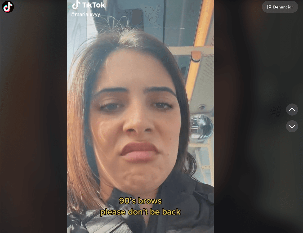 Hace unos meses, la joven compartió mediante esta red social y con una simpática música de fondo, la decepción de ver sus cejas delgadas, muy al estilo de los 90s.