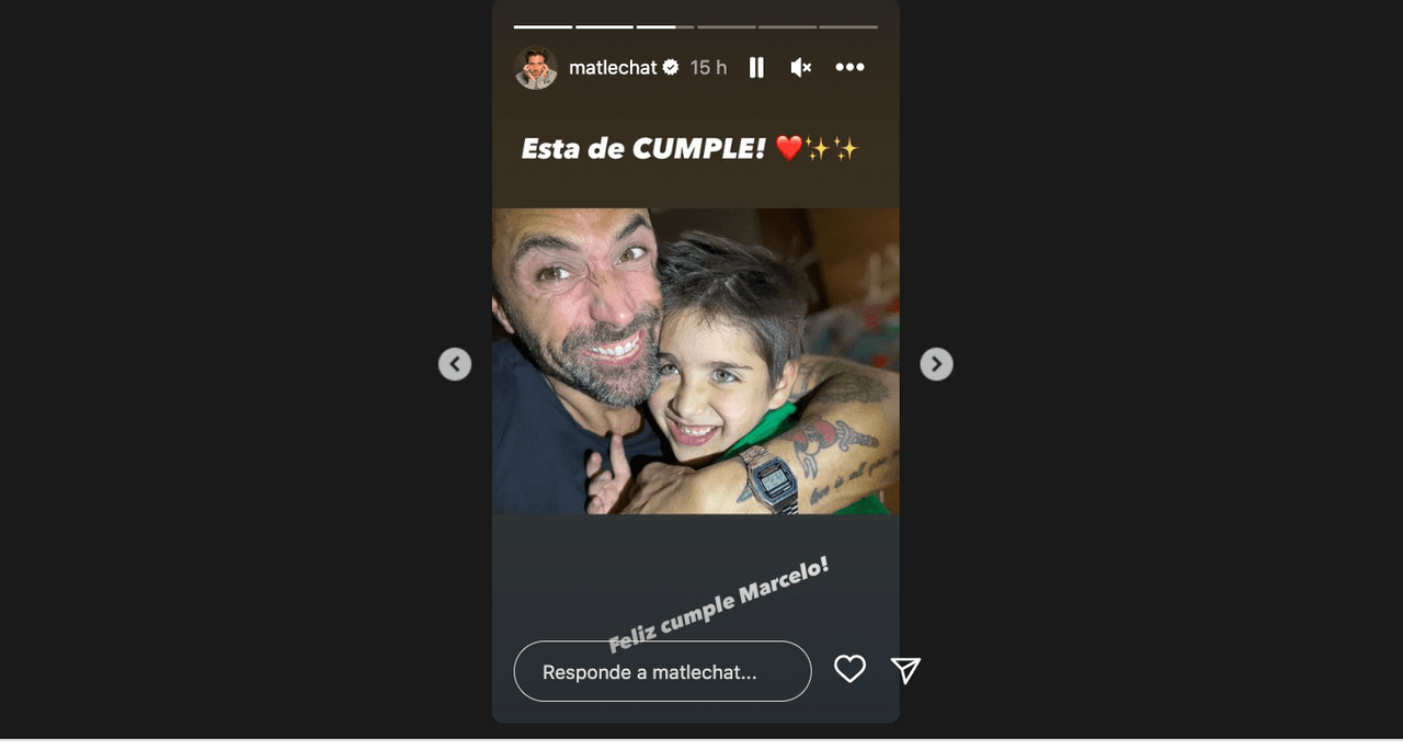 Por su parte, Matías subió una historia en la que aparece abrazado de su pequeño amigo e hijastro, al tiempo que le desea un feliz cumpleaños. La relación al estilo padre e hijo que han construido el chileno y Marcelo ha conmovido enormemente al séquito de fans de ambos famosos.
