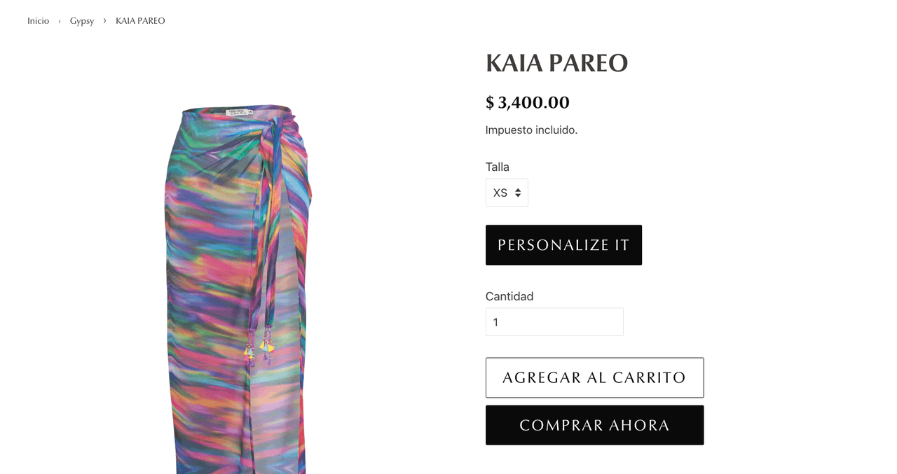La parte de abajo del traje de baño tiene un costo de 1 mil 470 pesos mexicanos, de acuerdo con el sitio de Díaz. Por su parte, el pareo de nombre 'Kaia' cuesta 3 mil 400 pesos.
