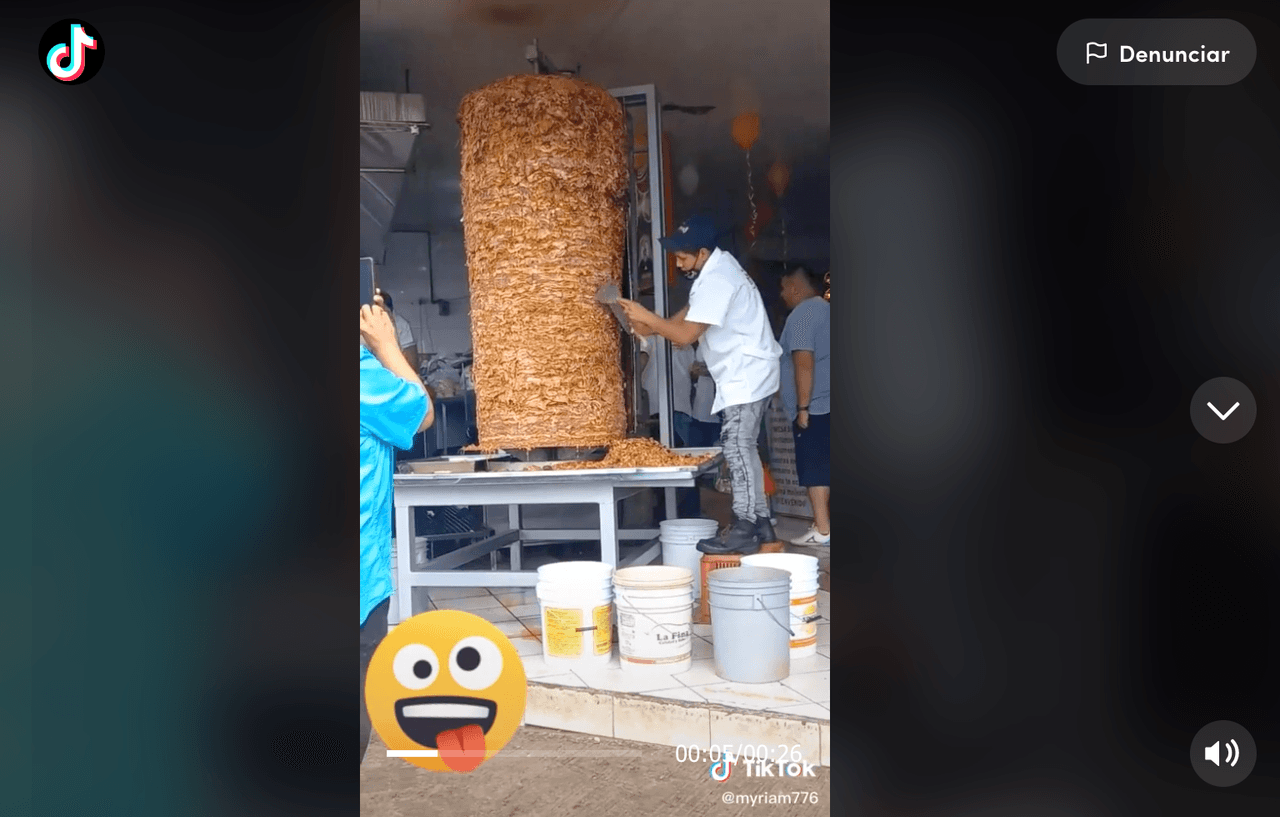 Bueno ahora ya no lo tienes que imaginar ni salivar en el proceso, pues recientemente se hicieron virales cuatro videos de TikTok que fueron compartidos por una usuaria de nombre Myriam y que muestra cómo una taquería hizo todos nuestros sueños realidad: así es nos trajo lo que usuarios afirman, es el trompo al pastor "más grande de México".