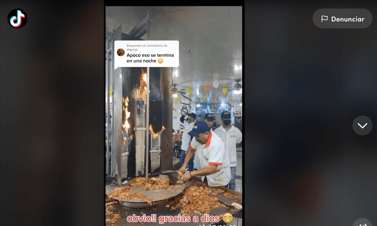 Cuando un internauta preguntó a Myriam, la autora de los mútiples videos, si esa monstruosa cantidad de carne se terminaba, ella contestó con otro video en el que se muestra la base del trompo completamente vacía, y lo acompañó de un texto que dice "Obvio! Gracias a Dios".