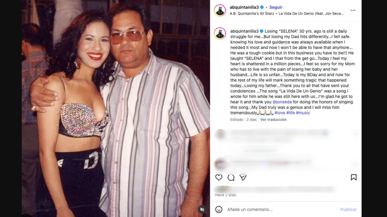 AB Quintanilla, quien dio a conocer la muerte de su padre Abraham Quintanilla, también recordó la pérdida de su hermana Selena y les dedicó un emotivo mensaje en redes