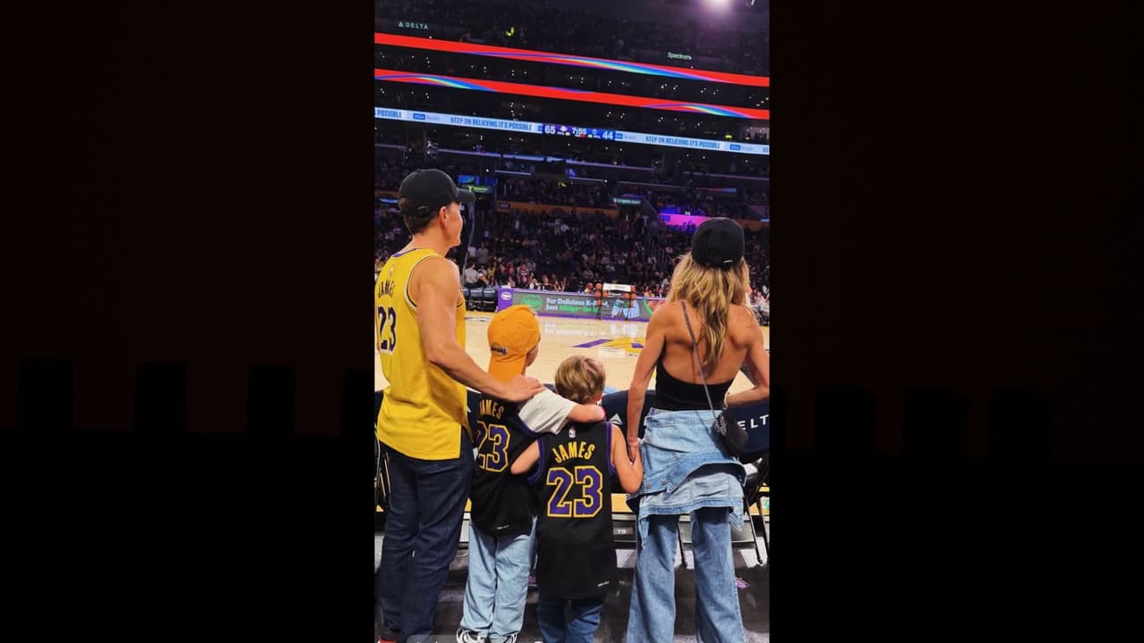En su cuenta de Instagram la intérprete de 'Mi Delirio' publicó una imagen donde aparece al lado de su esposo y sus hijos, mientras disfrutaban el partido de los Lakers contra los Washington Wizards, dejando ver que se encontraban en la primera fila y estaban muy atentos al encuentro.