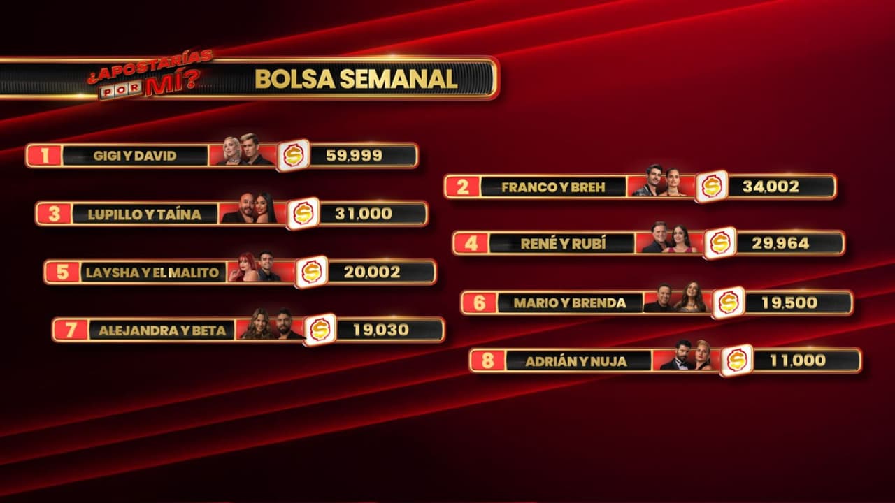 Sexta semana de competencia y las reglas se renuevan cada inicio de jornada en ¿Apostarías por Mí? Tanto las parejas como los fans saben que cada lunes empieza un nuevo ciclo en el juego, tanto en los desafíos, como en las estrategias, las reglas y la bolsa semanal.