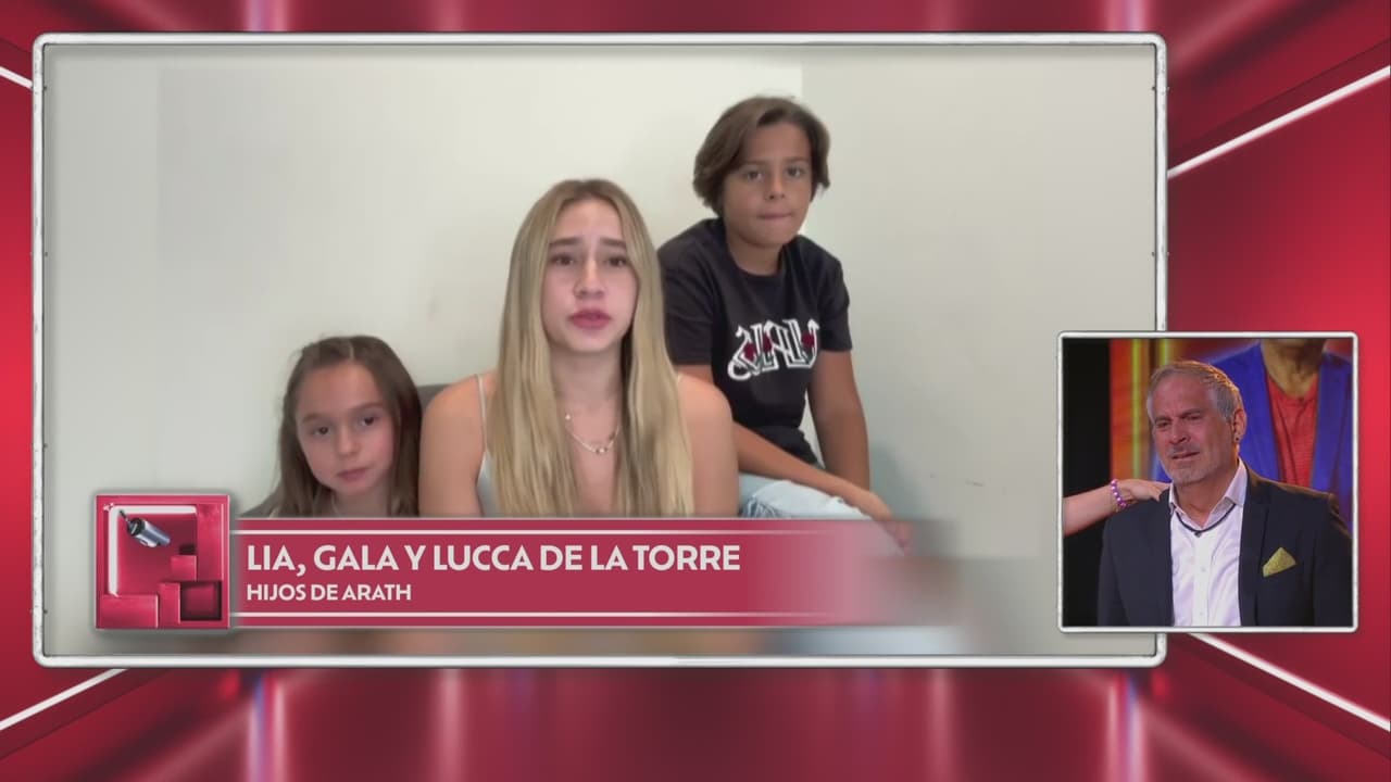 Lía, Gala y Lucca de la Torre aparecieron en la pantalla para mandarle un mensaje a su papá, pidiéndole que continúe dando lo mejor en la competencia, lo cual provocó el llanto del actor, quien siempre tiene presente a su familia.