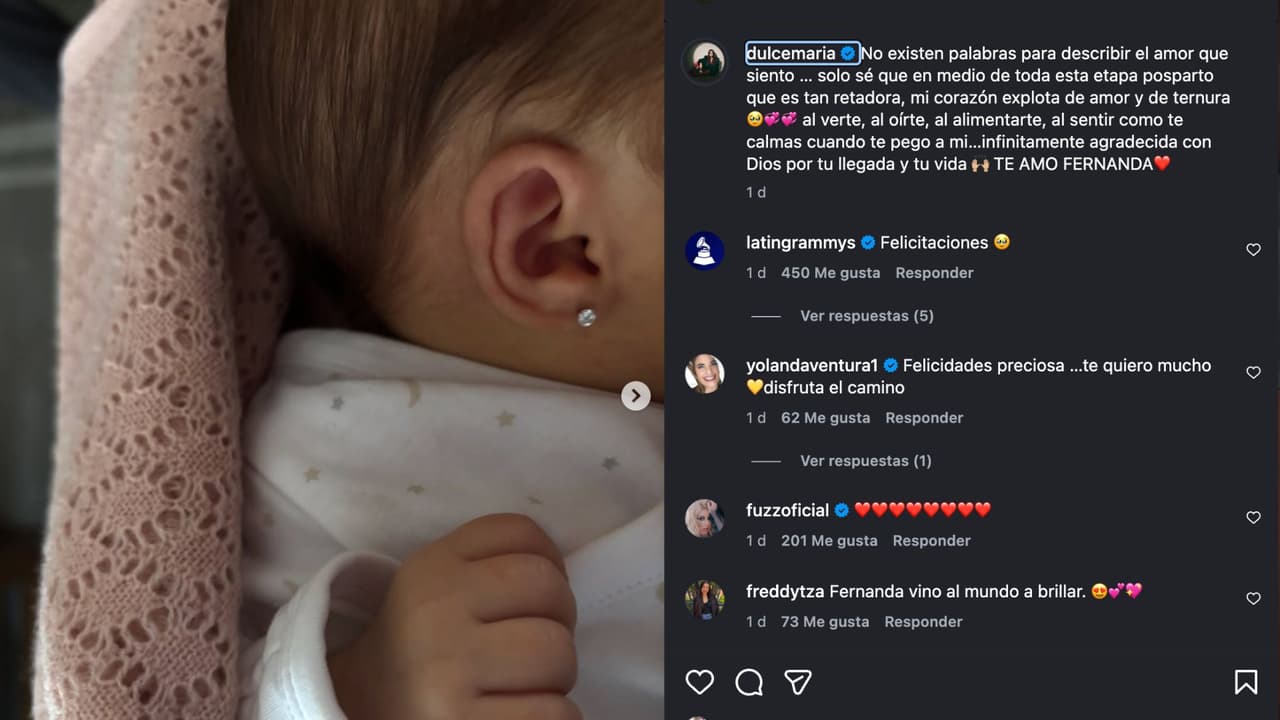 En el conmovedor mensaje que dejó a su hija a través de su cuenta de Instagram, Dulce María describió como "retador" su etapa postparto, sin dar más detalles sobre algún posible problema de salud o complicaciones al dar a luz.