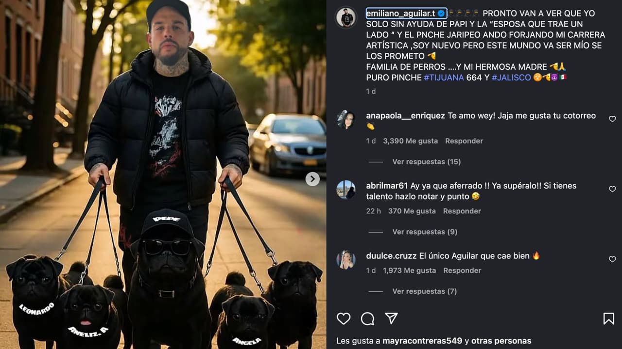 El pasado sábado 25 de octubre, el cantante lanzó un mensaje donde además de criticar a los premios, también aseguró que el que provocó todo el incidente fue su propio padre, Pepe Aguilar. Hace un par de horas, Emiliano publicó una fotografía editada donde él se muestra 'paseando' a cinco perros.
