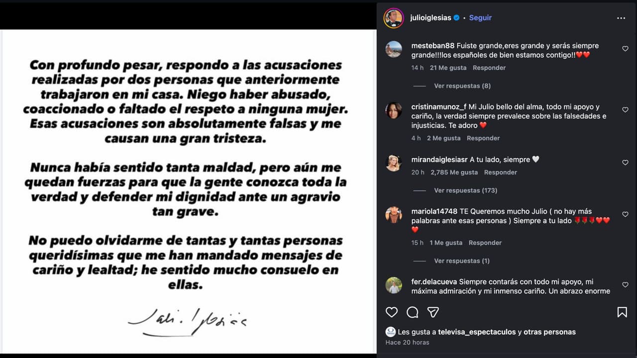 Tras las fuertes acusaciones, el intérprete de 'Soy un Truhán, Soy un Señor' lanzó un breve comunicado donde negó rotundamente los abusos e incluso dijo que no ha "faltado al respeto a ninguna mujer", asegurando que "esas acusaciones son absolutamente falsas y me causan una gran tristeza".