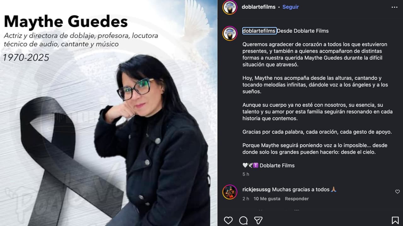 ¿De qué murió la actriz de doblaje Maythe Guedes?