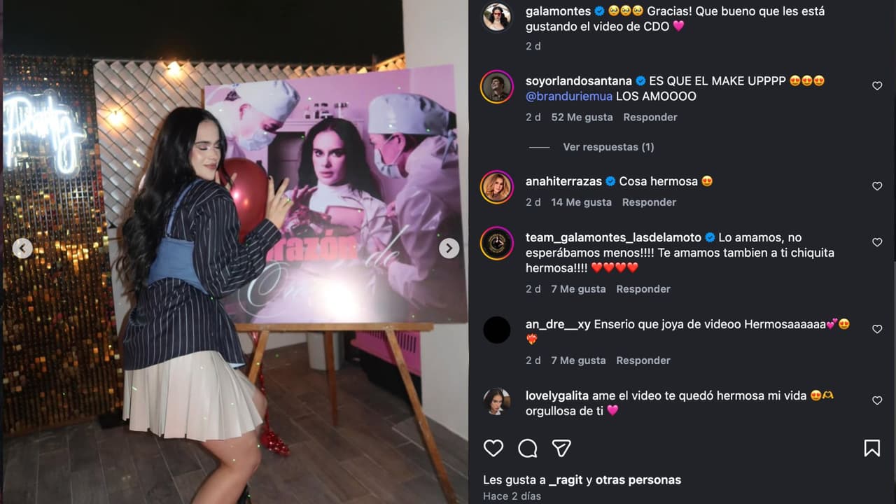 A través de sus redes sociales, Montes subió un par de videos y fotografías celebrando el lanzamiento del video de 'Corazón de Oro', por lo que organizó una gran fiesta y vio el clip al lado de sus amigos más cercanos.