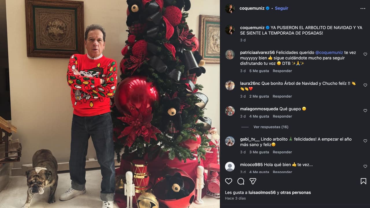 En la imagen que subió a su cuenta de Instagram, 'Coque' posó junto a su árbol de Navidad, vestido con un súeter festivo. Ahí mostró su figura delgada, algo que encendió la conversación entre sus seguidores.
