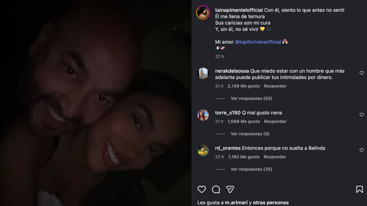 "Con él, siento lo que antes no sentí. Él me llena de ternura. Sus caricias son mi cura y, sin él, no sé vivir. Mi amor, @lupilloriveraofficial", escribió la dominicana.