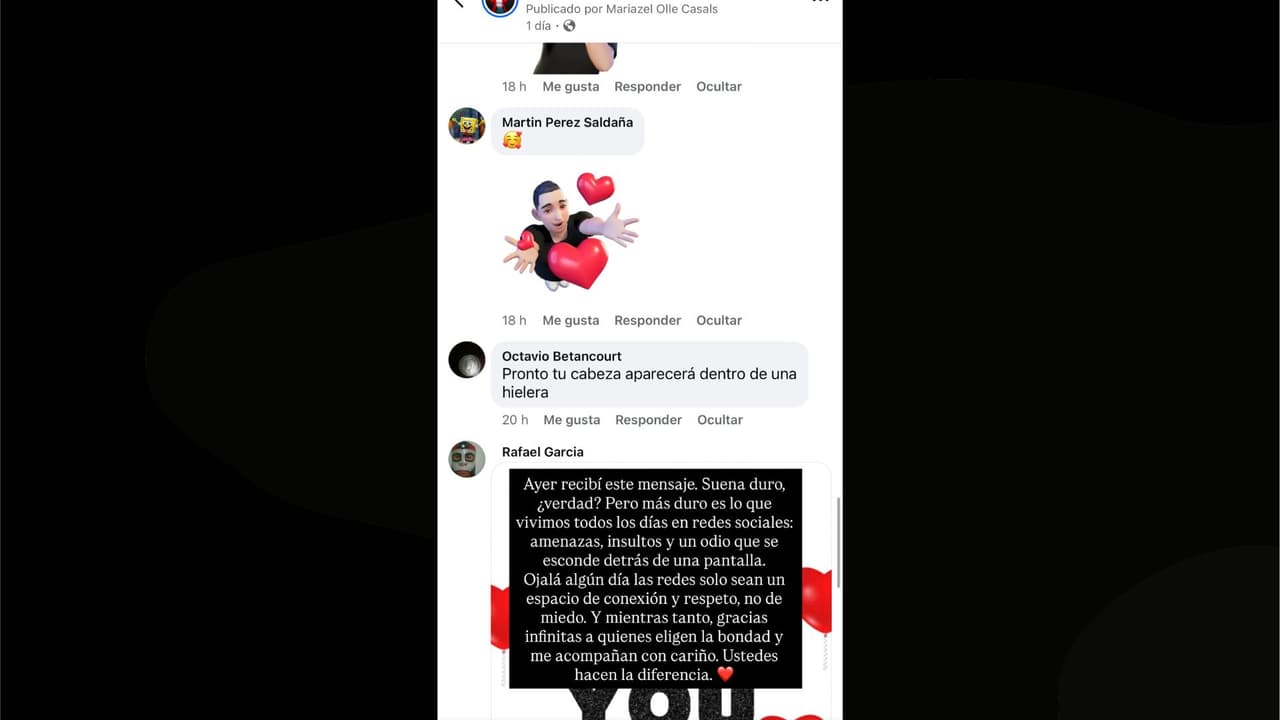 Ayer recibí este mensaje. Suena duro, ¿verdad? Pero más duro es lo que vivimos todos los días en redes sociales: amenazas, insultos y un odio que se esconde detrás de una pantalla", se lee en su posteo.