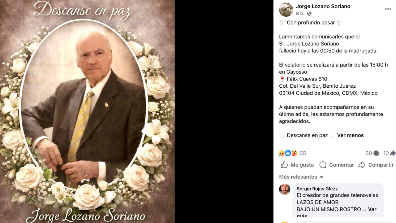 Con profundo pesar. Lamentamos comunicarles que el Sr. Jorge Lozano Soriano falleció hoy a las 00:50 de la madrugada", dice el comunicado.