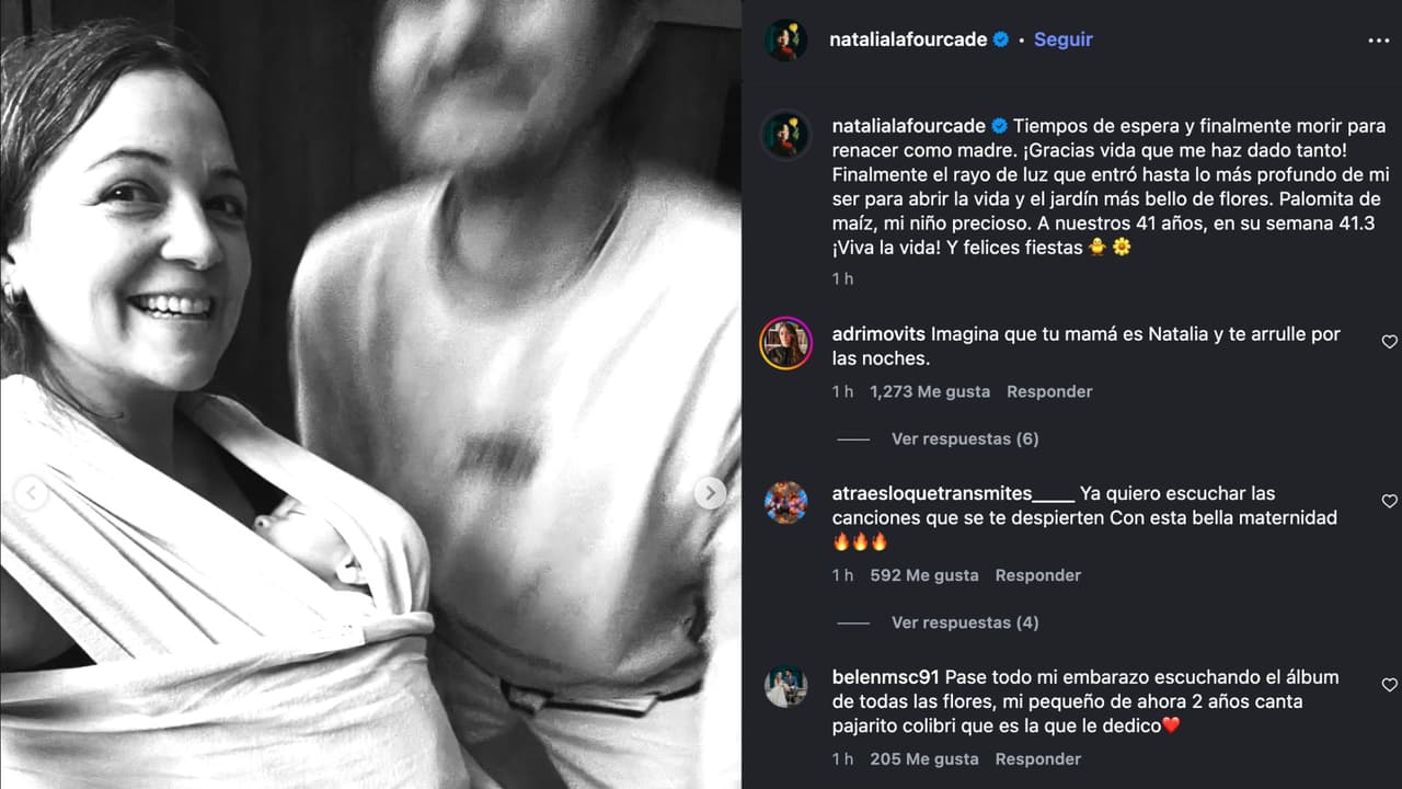 Tiempos de espera y finalmente morir para renacer como madre. ¡Gracias vida que me haz dado tanto! Finalmente el rayo de luz que entró hasta lo más profundo de mi ser para abrir la vida y el jardín más bello de flores. Palomita de maíz, mi niño precioso. A nuestros 41 años, en su semana 41.3 ¡Viva la vida! Y felices fiestas", escribió la cantante en sus redes sociales.