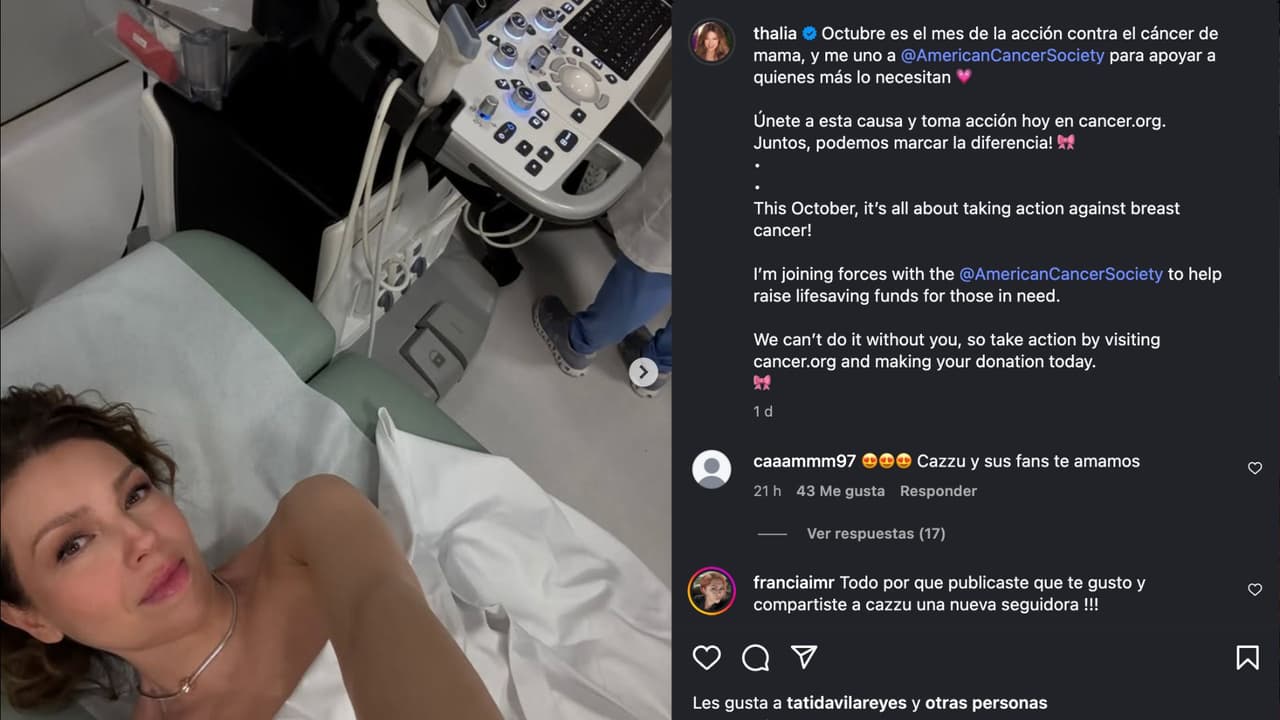 Octubre es el mes de la acción contra el cáncer de mama, y me uno a @AmericanCancerSociety para apoyar a quienes más lo necesitan. Únete a esta causa y toma acción hoy en cancer.org. ¡Juntos podemos marcar la diferencia!", se lee en su publicación.