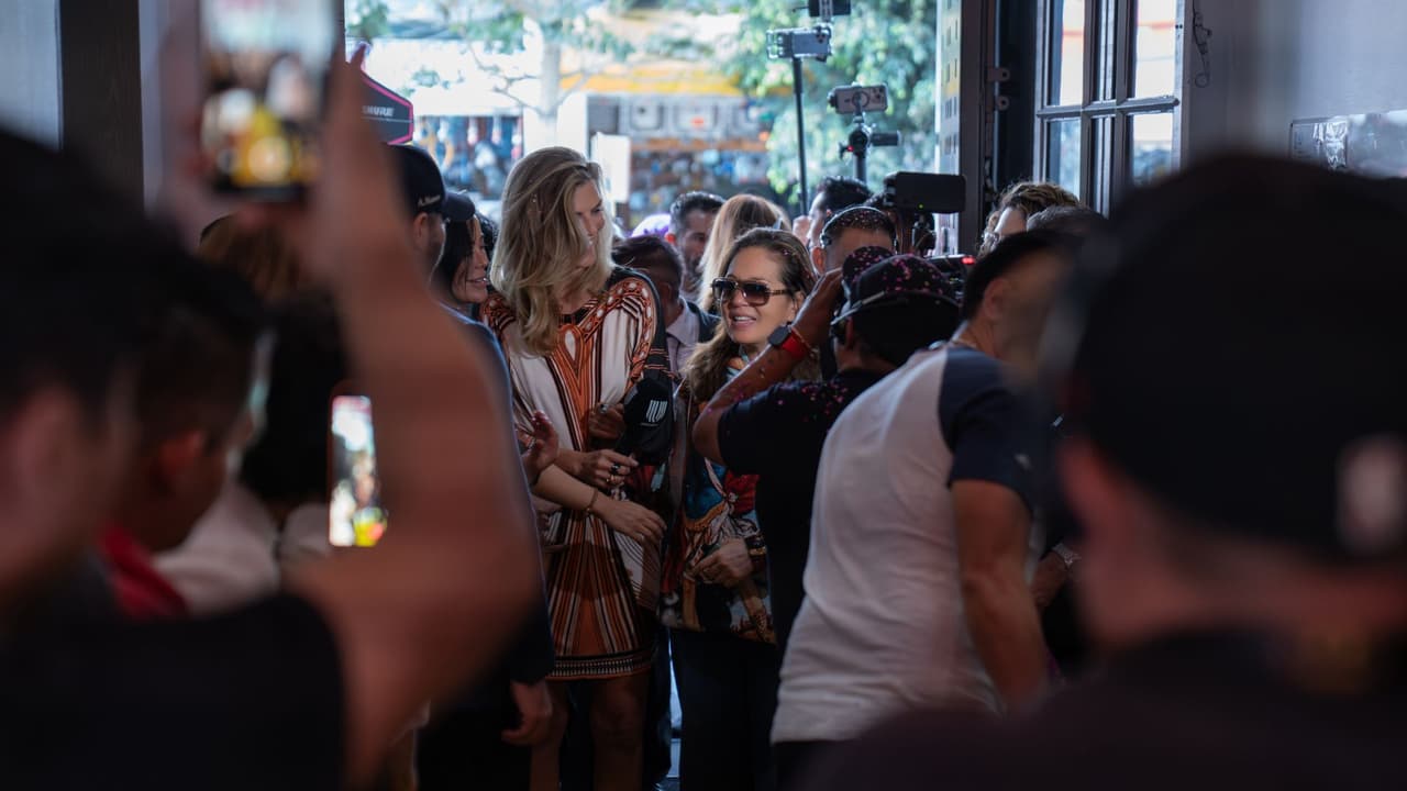Una de las actrices que se encontraba en su gran regreso a la pantalla era Geraldine Bazán, quien aprovechó el tiempo para platicar un poco con su amiga.