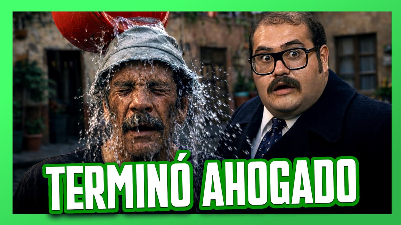 Debido a la tubería rota en la vecindad, Don Ramón es engañado por la Chilindrina para ser él el que llene y cargue las cubetas.