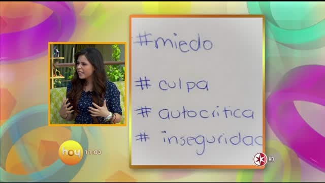 "A veces, cuando uno tiene que tomar decisiones dice: ¿sigo adelante, aquí le paro, aquí lo dejo? Pero hay muchos fantasmas que no te dejan tomar decisiones como tendrías que tomarlas, el miedo, la inseguridad, la autocrítica y la culpa", comentó al aire durante la emisión del programa Hoy la grafóloga Marifer Centeno, quien esta vez pidió que escribieran en una hoja en blanco 4 palabras: miedo, culpa, inseguridad y autocrítica.