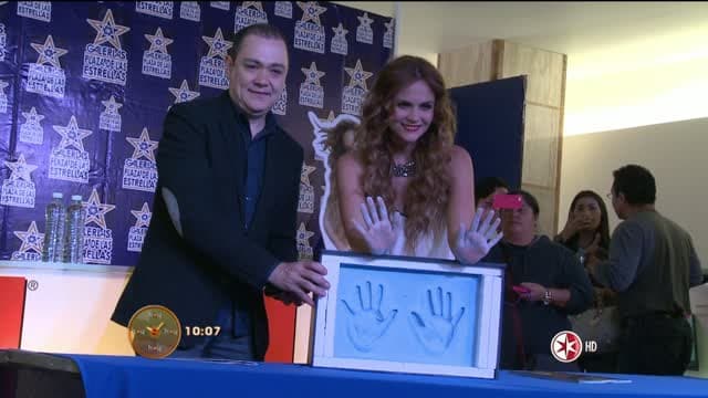 "Feliz, ya me habían dicho, desde que vine con Amor bravío, pero no se había podido, ya que lo pude hacer, muy bonito, se siente halagado uno de que le digan: '¿quieres plasmar tus huellas?', pues claro", comentó la actriz.