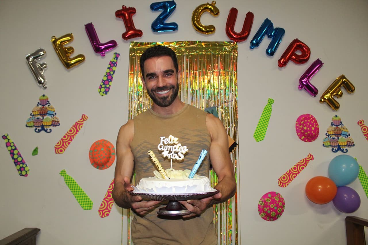 "Me siento muy emocionado y contento de estar cumpliendo años mientras grabo la telenovela, estoy feliz por muchas cosas buenas que me están pasando", dijo visiblemente conmovido, que llega a los 40 años de vida.