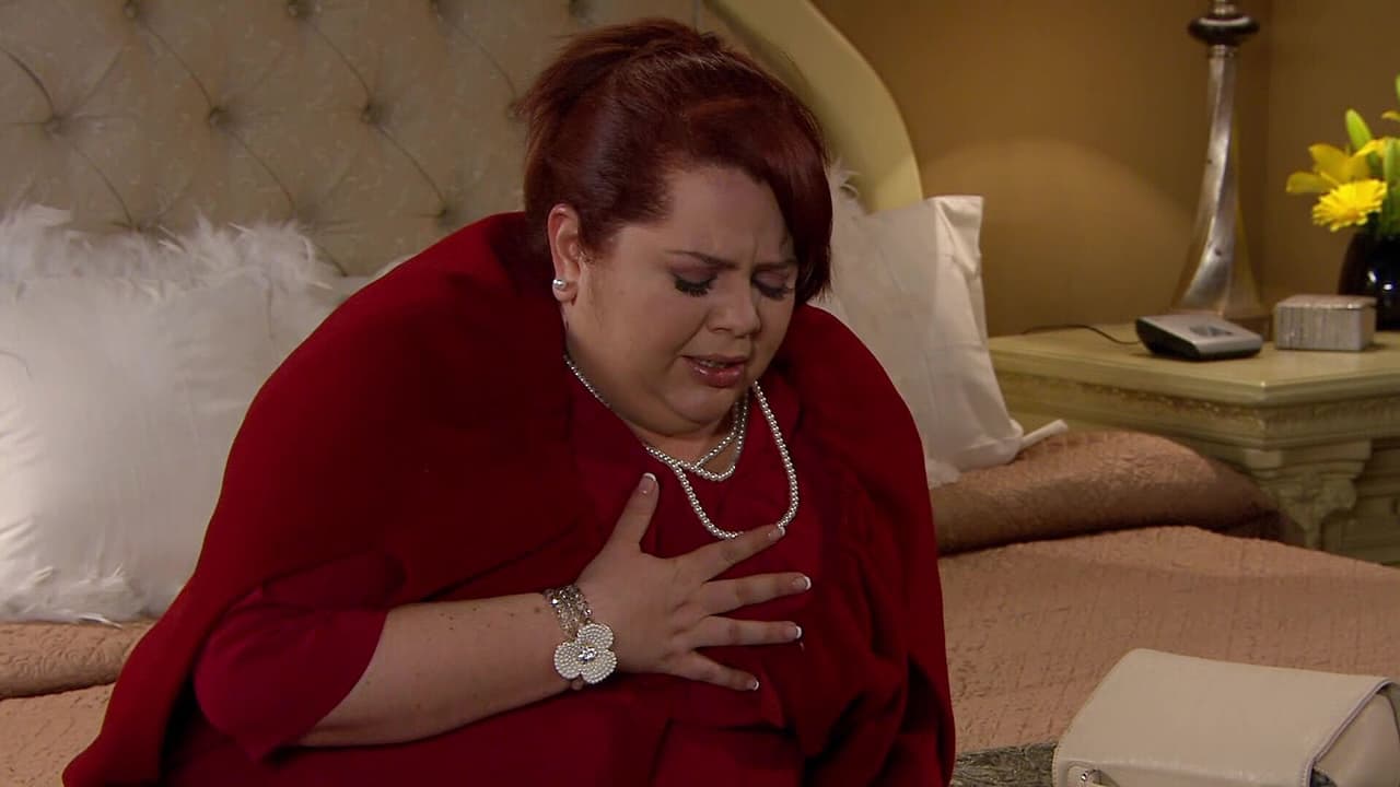 Después de comer de más en la cena, Antonia comienza a sentirse mal e incluso se desvanece.